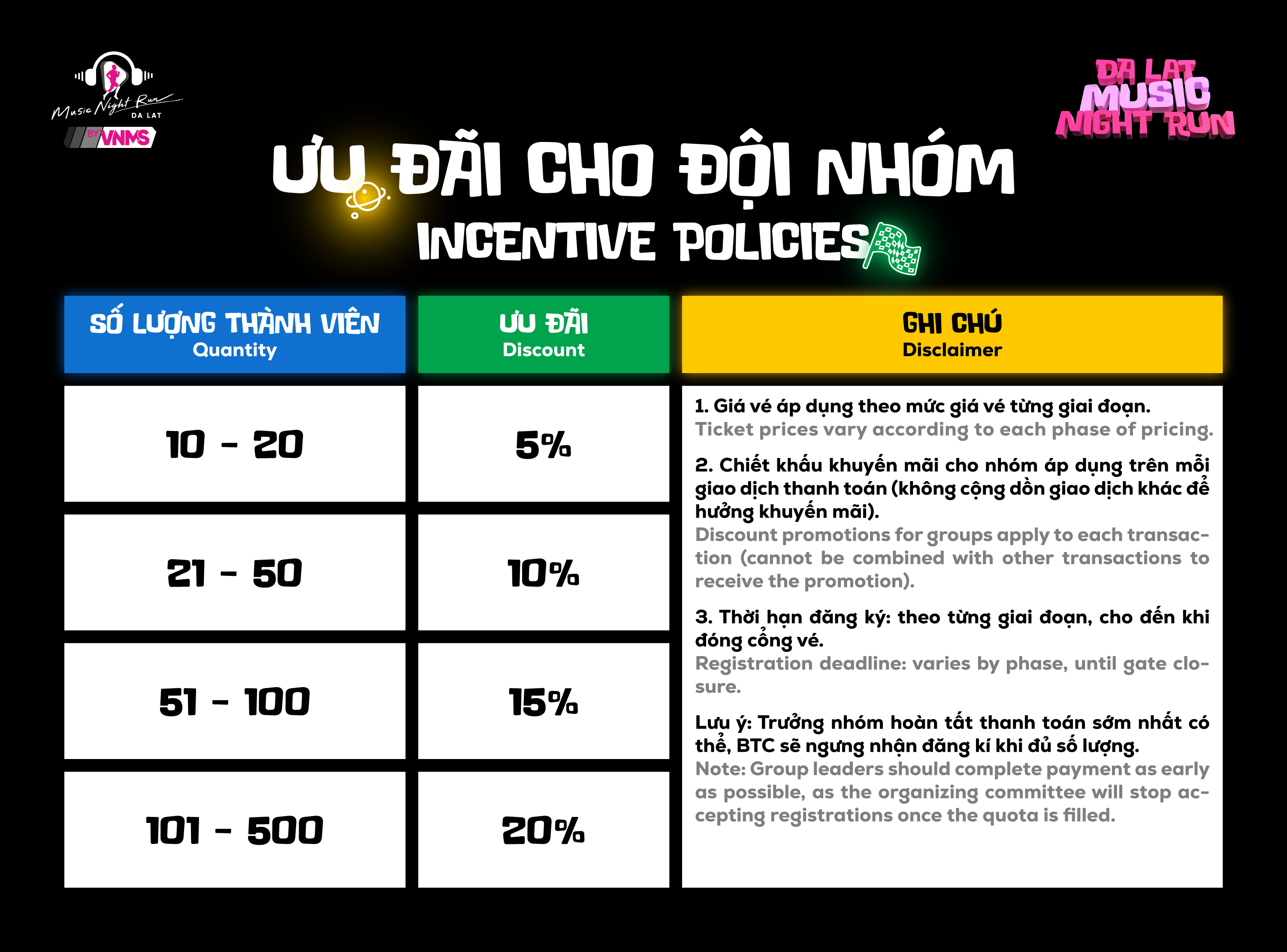 Da Lat Music Night Run 2026 is officially back, brighter and more explosive than ever. An international-standard route, a concert stage with a surprising line-up in the heart of Da Lat city, allowing each runner to shine in their own unique style in every moment.