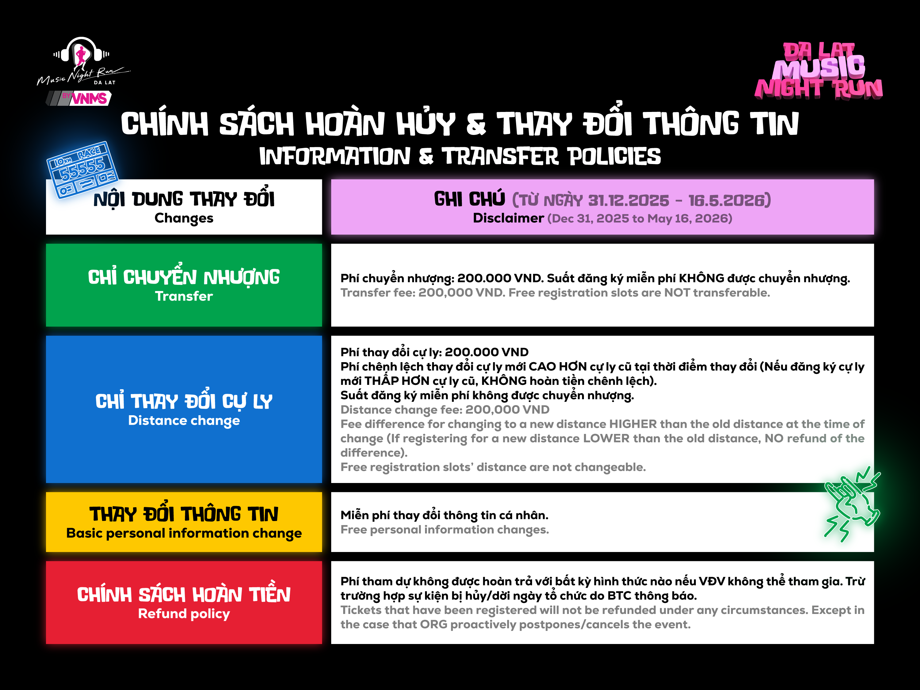 Da Lat Music Night Run 2026 đã chính thức trở lại, rực rỡ hơn, bùng nổ hơn. Một cung đường đạt chuẩn quốc tế, một sân khấu concert với dàn line-up đầy bất ngờ giữa trung tâm thành phố Đà Lạt, để mỗi runner được tỏa sáng theo màu sắc riêng của mình trong từng khoảnh khắc.