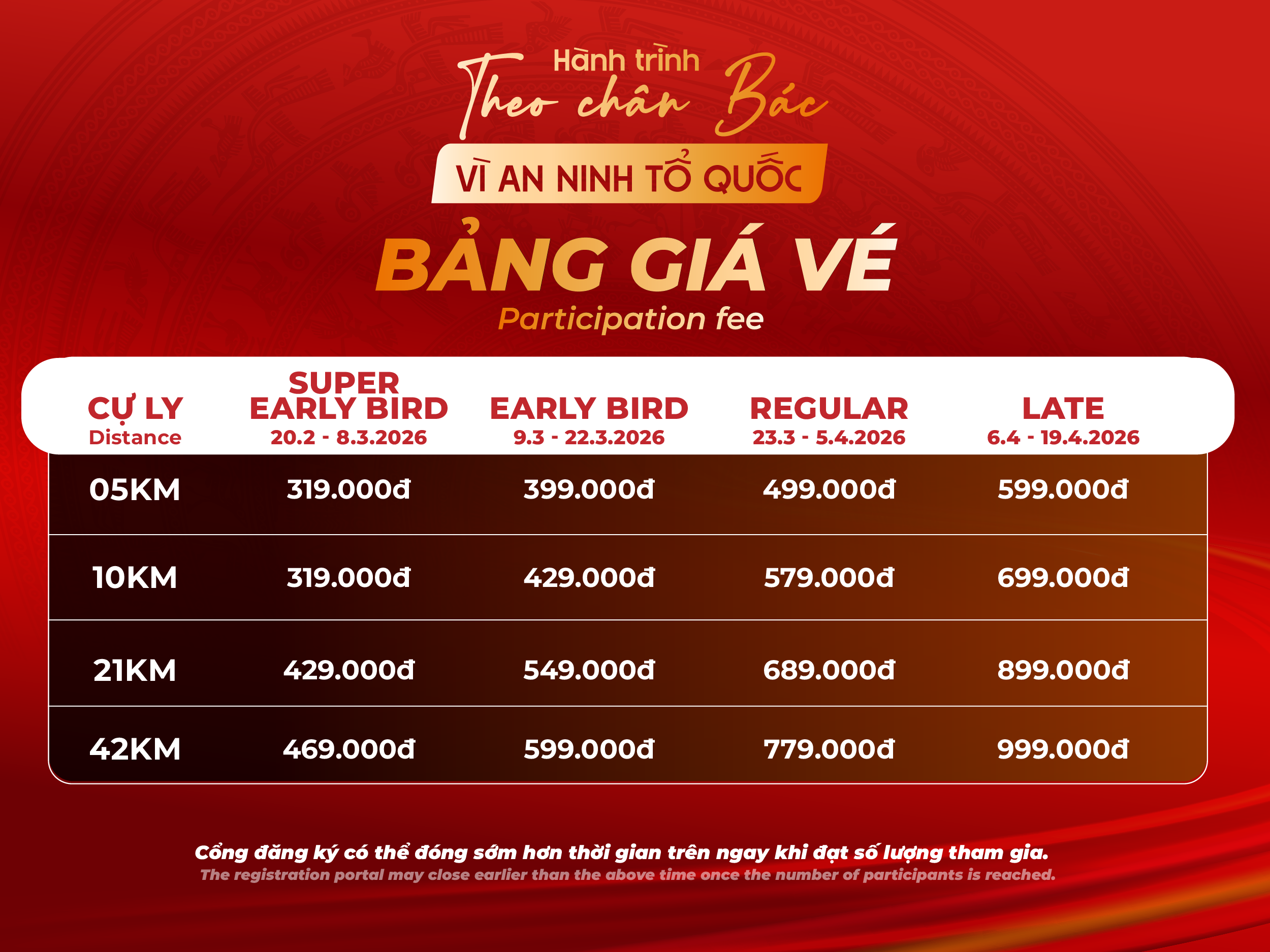 Cự ly: 5km – 10km – 21km – 42km