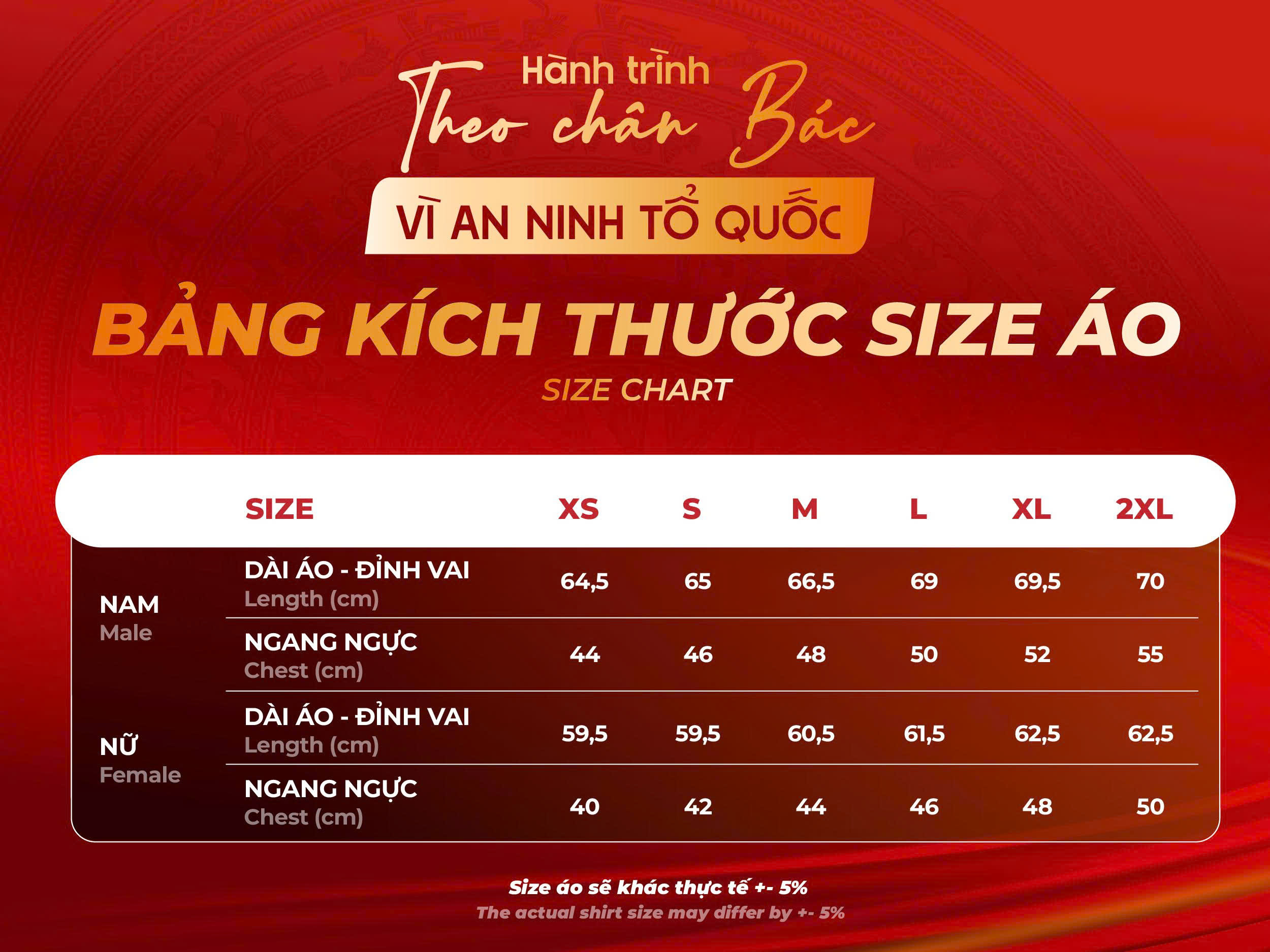 Bảng size áo