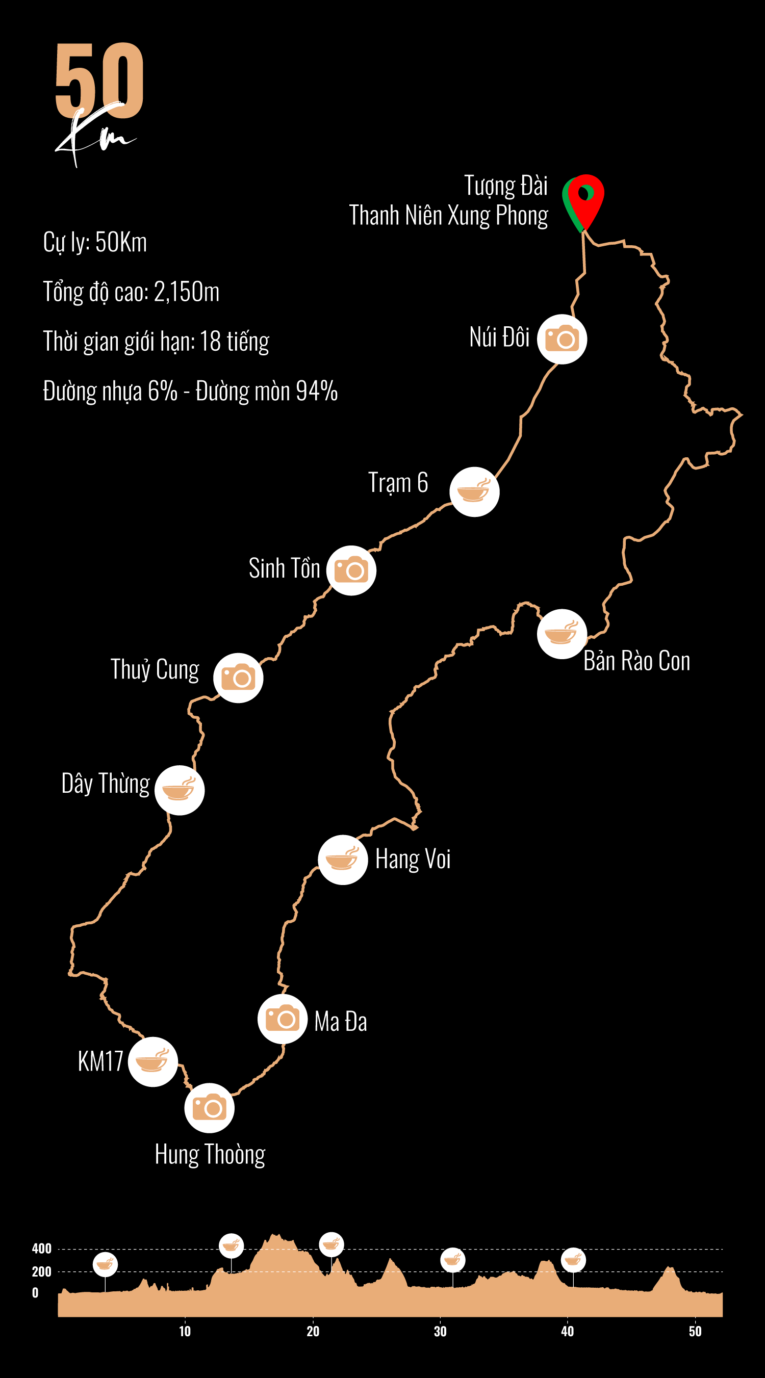 Các cự ly thi đấu: 70km, 50km, 20km, 10km và 5km.