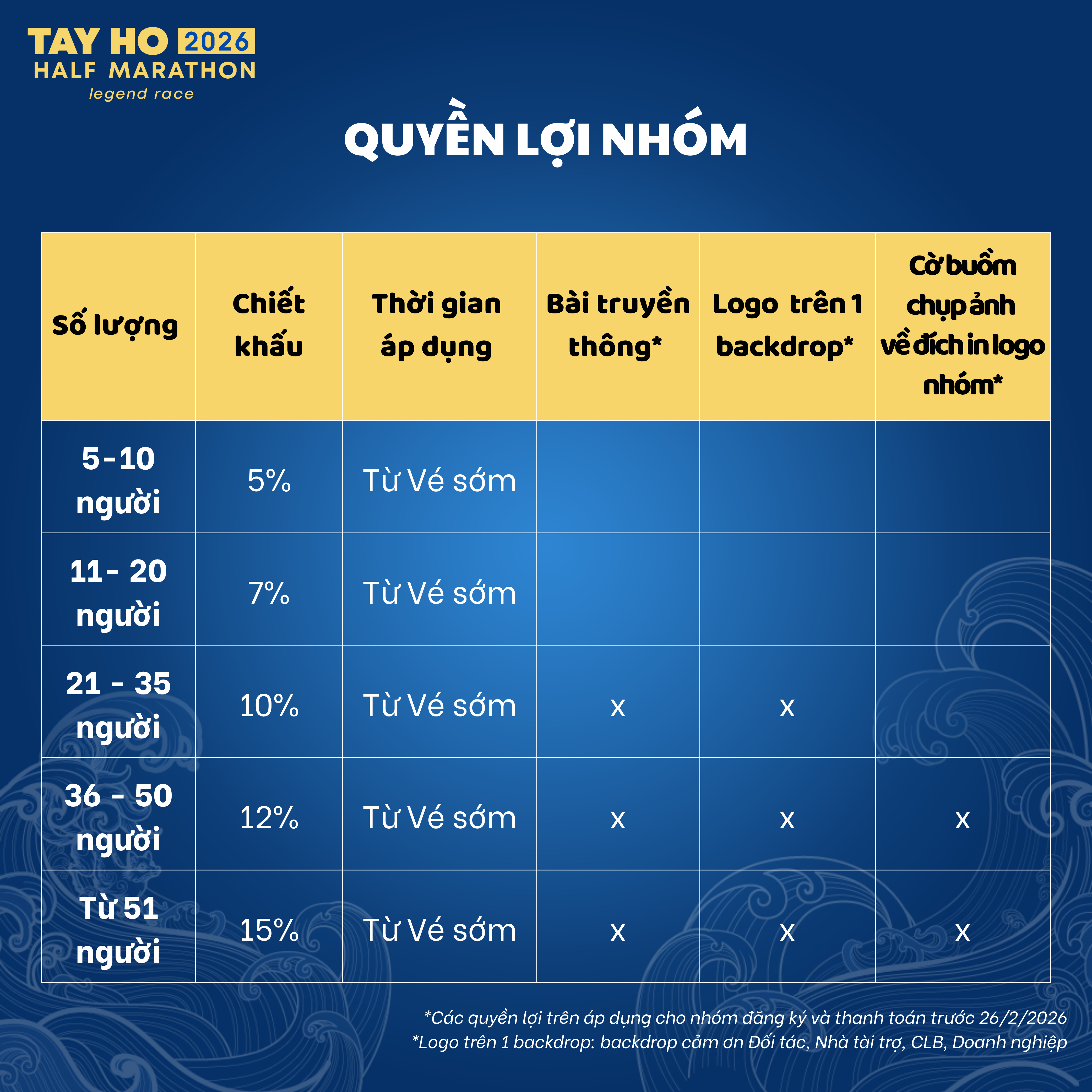 - Tay Ho Half Marathon 2026 do VRace (by VuMedia) tổ chức – đơn vị giàu kinh nghiệm và đã tổ chức, vận hành thành công nhiều mùa giải trước. Giải được triển khai chuyên nghiệp, phối hợp chặt chẽ cùng các đối tác và cơ quan chức năng, không chỉ đảm bảo trải nghiệm an toàn cho vận động viên mà còn tạo điều kiện để người dân và du khách cùng hòa mình vào không khí của một trong những sự kiện thể thao – văn hóa đặc sắc nhất Thủ đô.