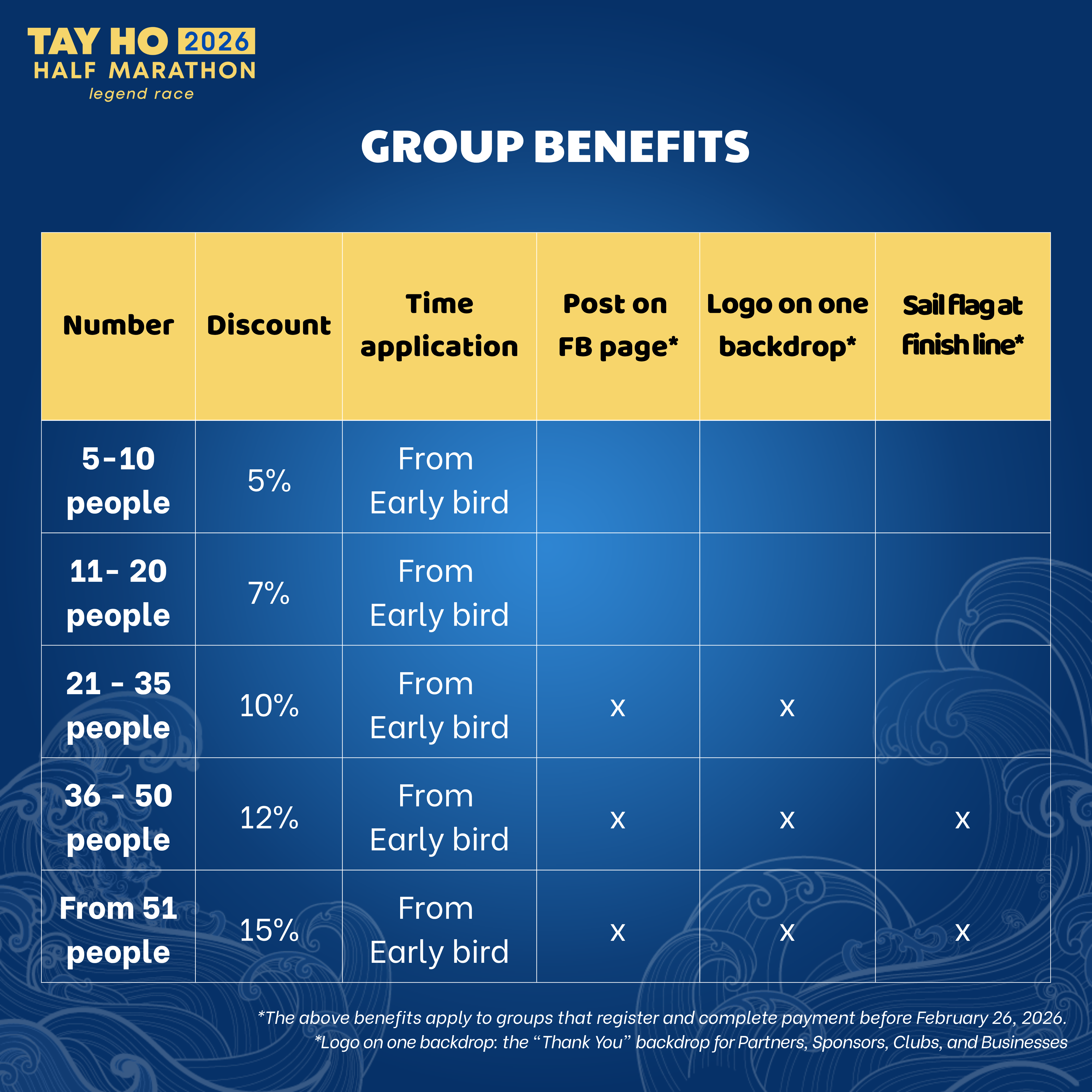 - After 5 seasons, the Tay Ho Half Marathon has become an annual sports gathering that welcomes thousands of runners from both Vietnam and around the world. In 2026, as we step into the 6th season, the journey continues – not only with strong strides, but also through the blend of Hanoi’s thousand-year spirit and its vibrant modern life.