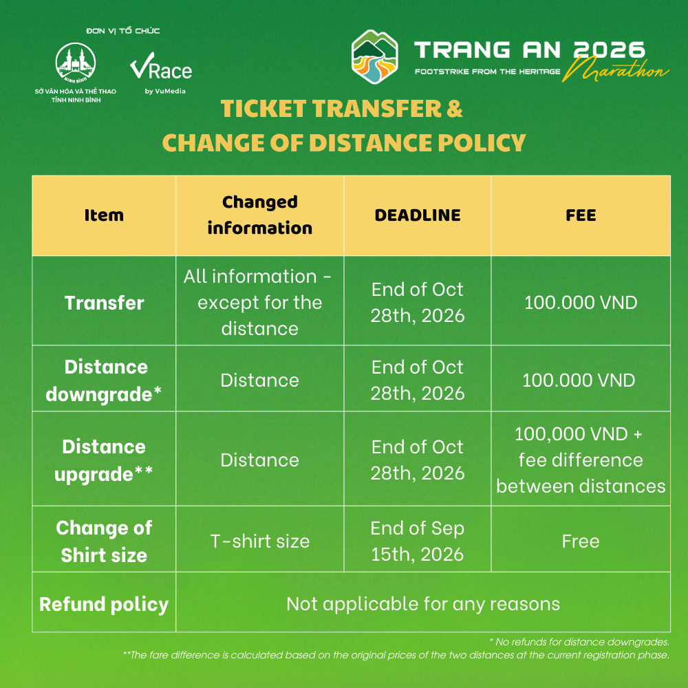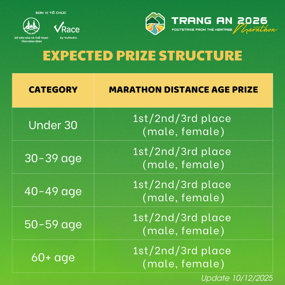 Trang An Marathon is an annual sporting event organized by Vu Media Joint Stock Company (VRace) in collaboration with the Ninh Binh Department of Culture and Sports. Let your Trang An journey become a vibrant and unforgettable milestone in your running story. See you and your fellow runners at Trang An Marathon 2026!
